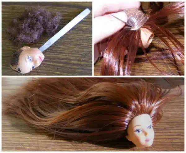 4) Changez les cheveux d’une poupée en les tirant depuis l’intérieur de la tête de la poupée.