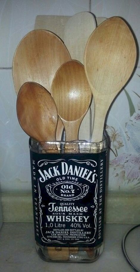 En coupant le goulot de votre bouteille en verre, vous obtiendrez un rangement parfait pour y caser vos cuillères et fourchettes en bois. On n’oublie pas d’enlever l’étiquette si celle-ci n’est pas flatteuse…