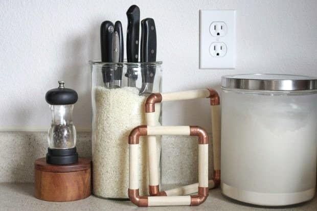 9) Remplissez un grand bocal de riz et utilisez cela pour ranger vos couteaux de manière originale.