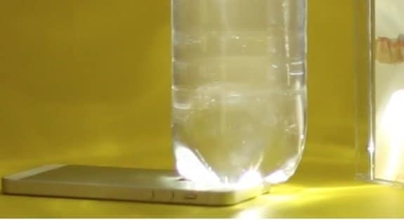 9) Avec une bouteille d’eau et la lampe poche de votre téléphone, créez une lampe très lumineuse idéale en camping.