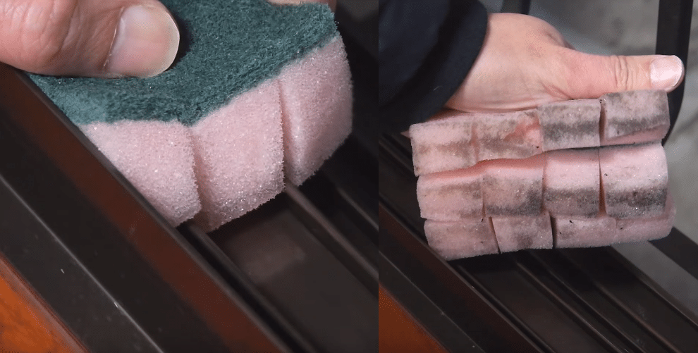 13) Avec un bon couteau ou un cutter, dessinez des carrés dans l’éponge et utilisez-la pour nettoyer dans les interstices, sur les grilles de barbecues ou sur les rails de fenêtre.