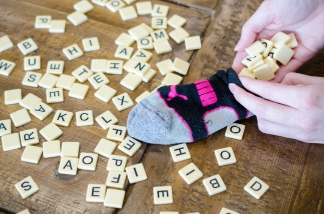11) Pour emporter partout les jeux contenant de petites pièces ou éviter de perdre des éléments, utilisez les chaussettes en tant qu’espace de stockage.