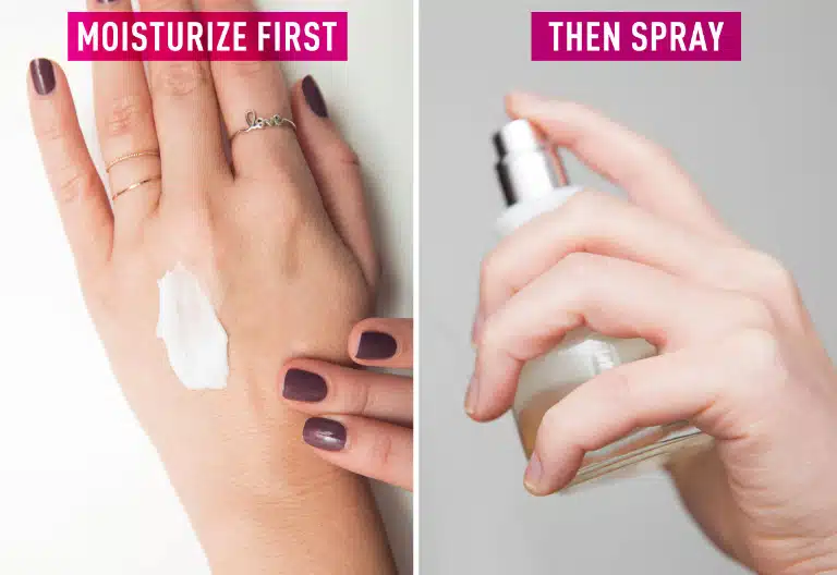 3) Le parfum tiendra mieux sur une peau plus « grasse ». Mettez la crème associée au parfum ou une crème à l’odeur neutre avant de pulvériser.
