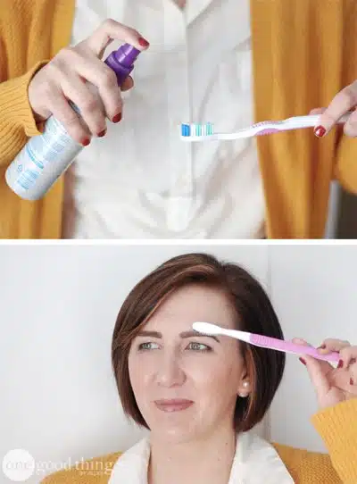 4) Mettez du spray coiffant sur une brosse à dents propre ou un goupillon et utilisez cela pour dompter vos sourcils toute la journée.