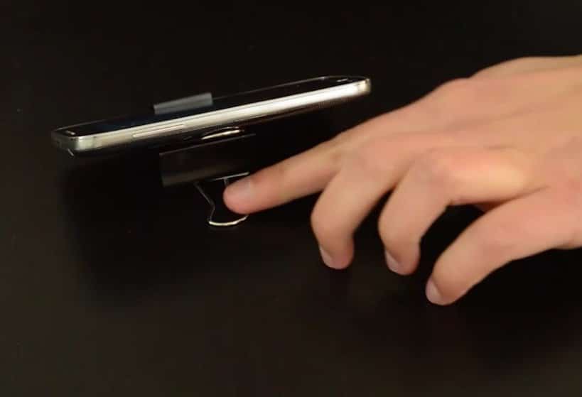 1) Pincez une pince plus petite avec un pince plus grande et vous obtiendrez un socle pour votre téléphone.