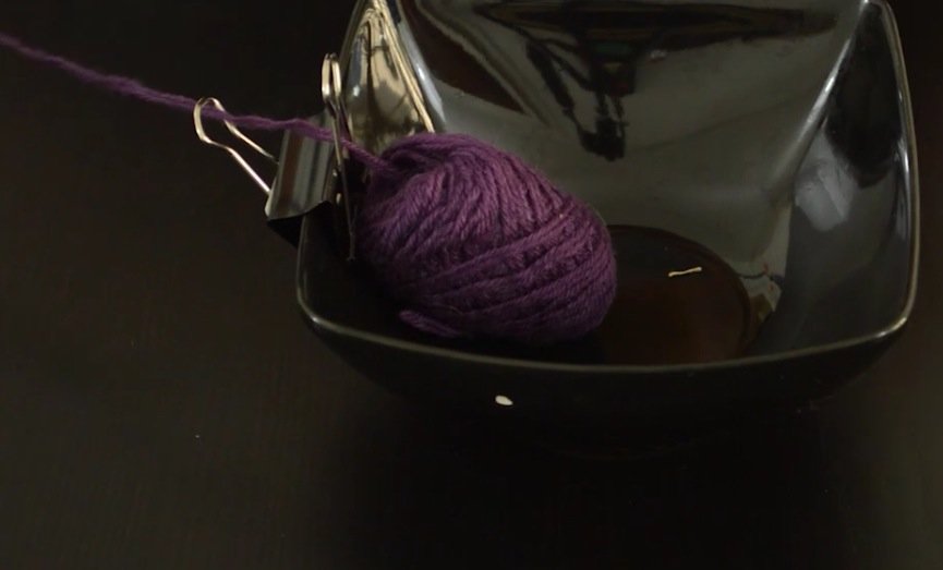 3) Pincez un récipient avec votre pince et faites passer votre fil au travers. Ce distributeur sera bien pratique pour vos travaux manuels !