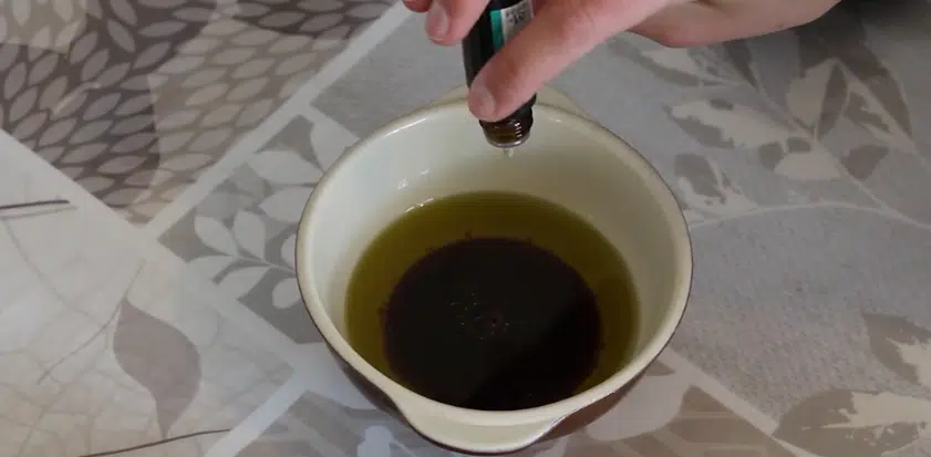2) Touillez un peu avec la brosse à dents. Cela permettra de l’imbiber un peu avec le mélange en même temps.