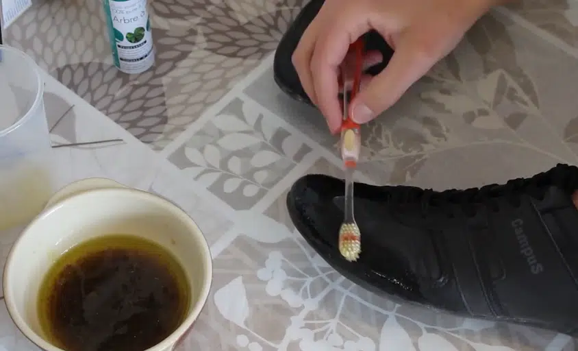 3) Frottez vos chaussures avec la brosse à dents.