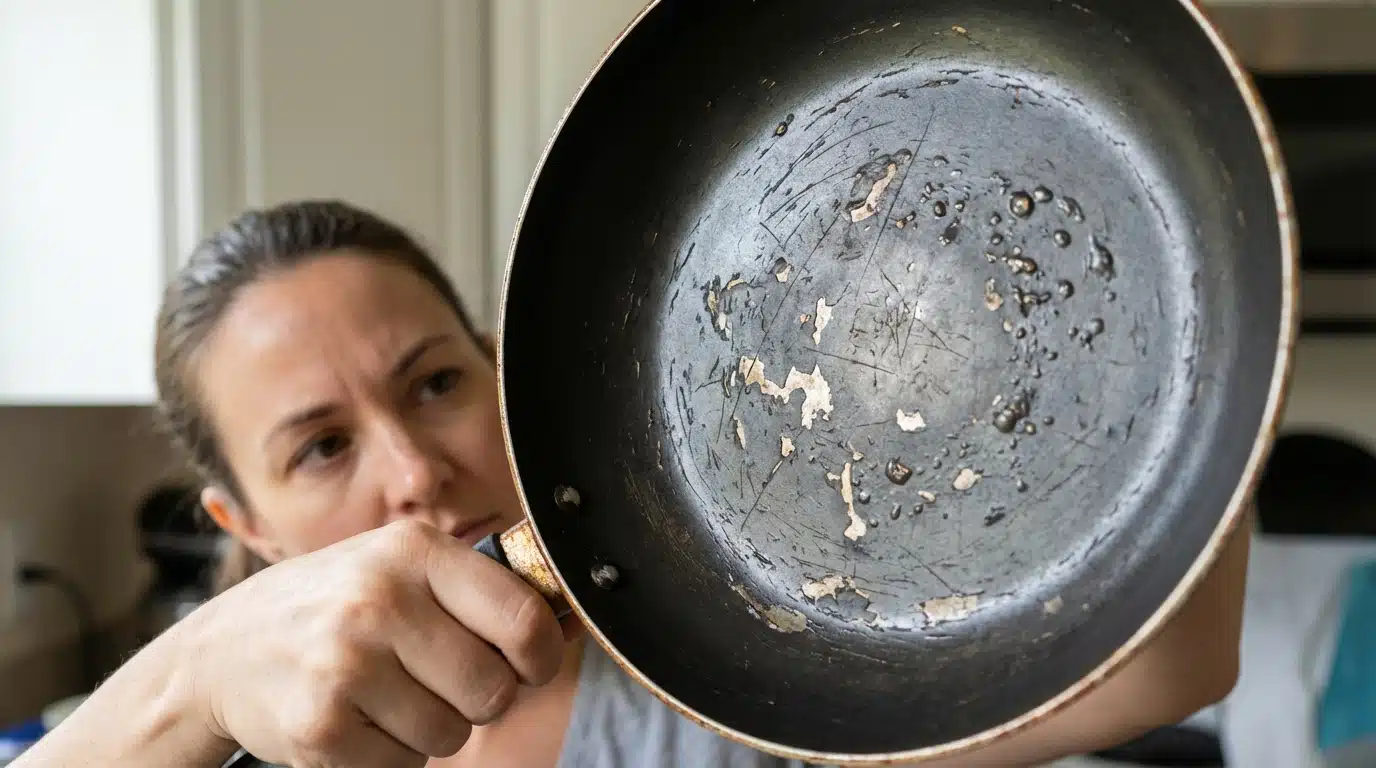 Ce signe indique qu’une poêle antiadhésive doit être remplacée