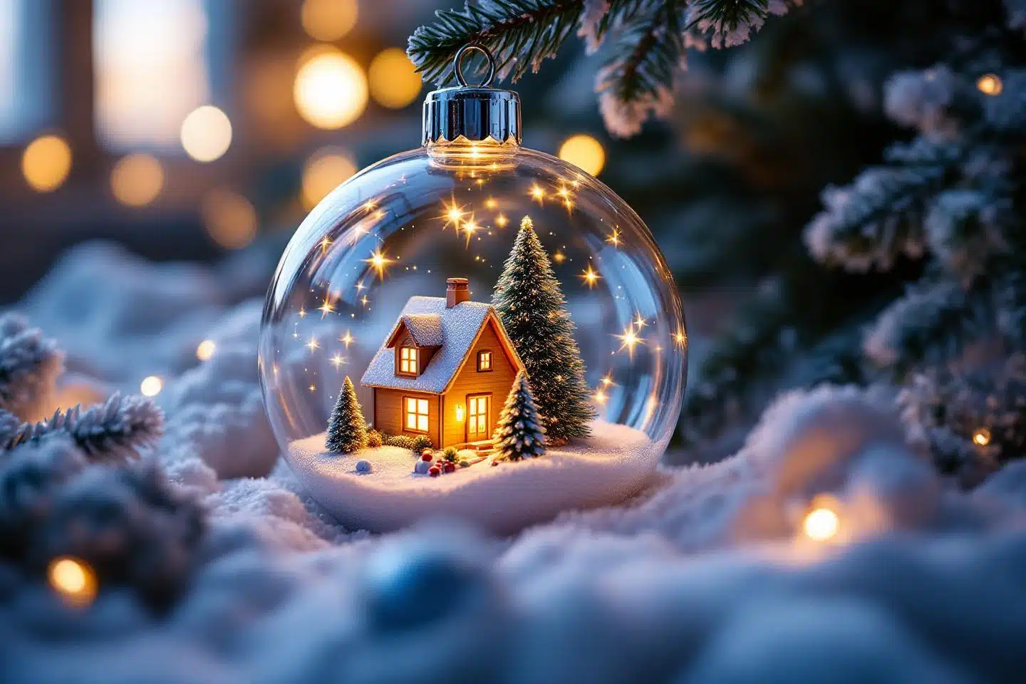 Cette boule de Noël ne se contente pas d’être jolie. Elle prend la forme d’une boule à neige transparente enfermant une adorable maison miniature et un petit sapin, comme une scène sortie d’un conte d’hiver. Chaque détail est pensé pour offrir un voyage, une pause contemplative dont raffolent ceux qui soignent l’ambiance de leur intérieur pendant les fêtes.