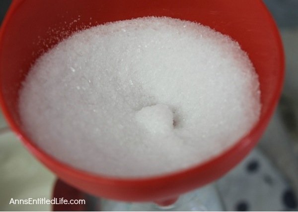 1) Remplissez la bouteille aux deux tiers avec le sel d’Epsom. Utilisez l’entonnoir pour ce faire pour éviter qu’il y ait des morceaux dans votre préparation et pour éviter d’en mettre partout. Versez ensuite le sel dans un récipient.