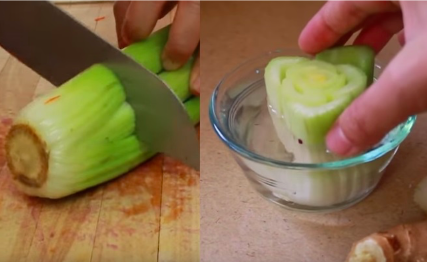 Coupez les à 10cm des racines, mettez dans l’eau dans un endroit où les rayons du soleil percent. Vous constaterez une pousse rapide et vous pourrez laisser la pousse finir dans l’eau ou planter vos oignons dans de la terre après environ une semaine !