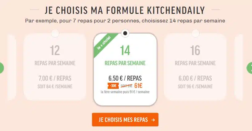 Pour la formule que nous avons testé : 14 repas par semaine, le prix est de 61€ la première semaine, puis de 91€ par semaine (soit 6,50€ par repas). Pour la qualité, la variété, le mix des produits (préparés/à préparer) et l’accompagnement, je trouve que le prix est abordable et raisonnable.