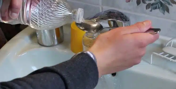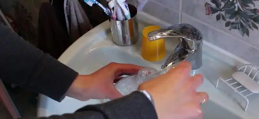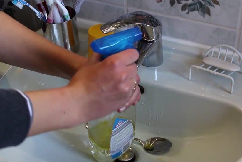 1) Commencez par verser un verre d’eau dans la bouteille.